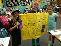 Melody was able to experience our fourth grade Maker Town Faire. Fourth graders were working on creating a project from scratch, designing, measuring, creating, constructing, and "selling" it with their peers. It was quite an exciting adventure. She is pictured with the group that got the most tokens from the visitors at the Faire. Visitors each received one token which they could "vote" for which product they would like to really buy if it were in a store. The winner was this "Confetti Bomb." Recycled from a small water bottle, it was covered with Duct tape and had a little shelf that could be raised to let torn paper, confetti, rise to the top.
